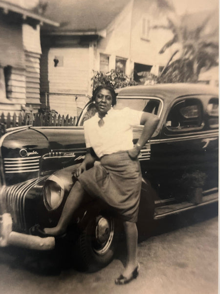 Woman Sits on Hood, 1949 Buick Roadmaster.
